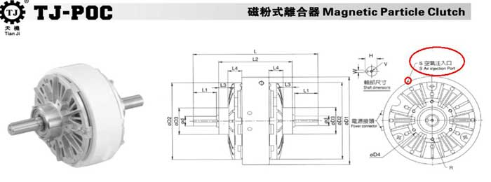 TJ-POC型磁粉離合器及TJ-POD磁粉制動器每個規(guī)格型號(6KG-40KG)的外圓都有個空氣注入孔,這個空氣注入孔有什么用途? 當磁粉離合器、制動器工作到一定的時間后,會生產熱量,隨之溫度就會越來越高,而溫度對設備使用壽命、性能都是有影響的。由于TJ-POC型磁粉離合器及TJ-POD磁粉制動器的散熱僅靠鋁端蓋(散熱片)是不夠的,因此提高散熱效率,需要通過空氣注入孔注入空氣進行輔助散熱。