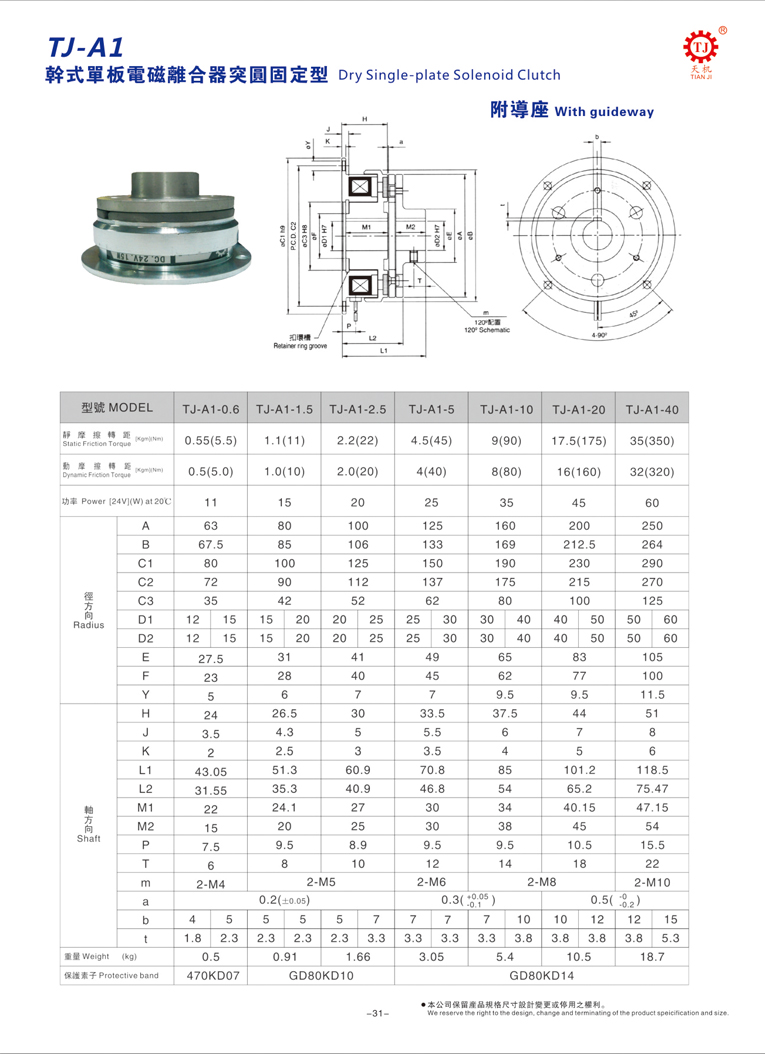 TJ-A1固定型干式單片電磁離合器(附鋁導(dǎo)座),具有高速應(yīng)答、安全可靠以及動作靈敏等優(yōu)點,廣泛被使用于食品機、包裝機、制袋機、沖床等機械領(lǐng)域,主要用途為傳送速度、傳送方向以及切離等工作。