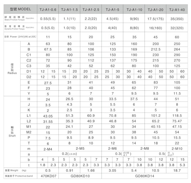 干式電磁離合器參數(shù)表